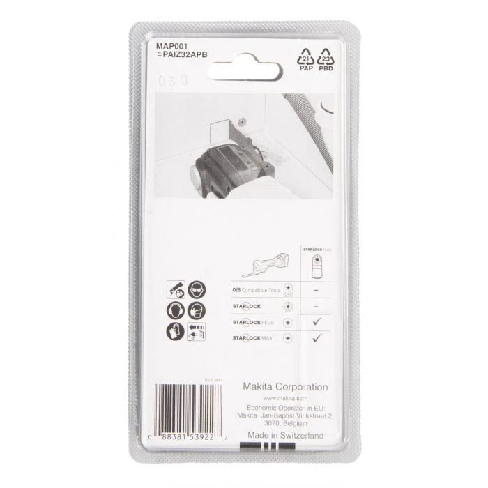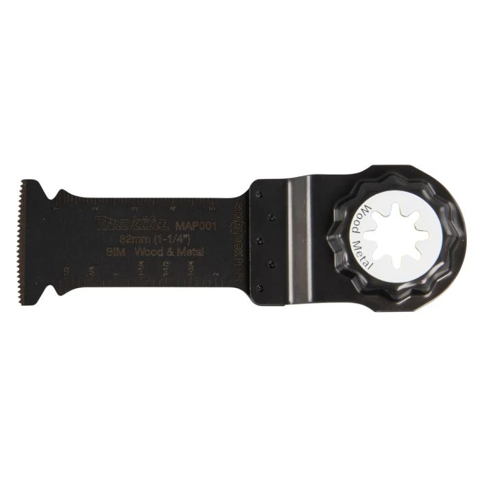 Makita multitool invalzaagbladen voor diverse materialen, met verschillende aansluitingen: STARLOCK, STARLOCK PLUS en STARLOCK MAX.