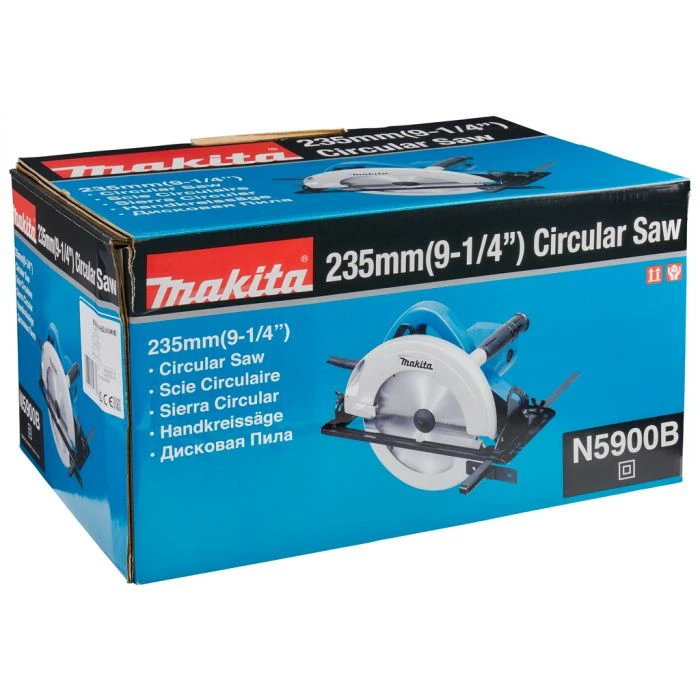 Instapmodel van de 235 mm cirkelzaag: eenvoudige, maar degelijke uitvoering, niet geschikt voor dagelijks intensief gebruik.